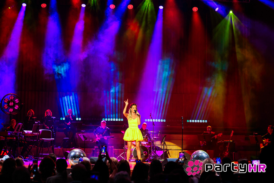 Večer je započela erupcijom ritmova i boja. Minea je već prvim taktovima hita "Vrapci i komarci" podigla publiku na noge, dok je 25 plesača, od najmlađih do odraslih, rasplesalo cijelu dvoranu. Od samog početka bilo je jasno da publiku ne očekuje klasičan koncert, već glazbeno slavlje koje će se dugo pamtiti. S pozornice su odjekivali Mineini bezvremenski hitovi koji su obilježili više generacija: „Rano", „Uberi ljubicu", „Hej ljubavi", „Da me 'oće Stipe", „Bit' će bolje", „Bio, Bio"... Svaka pjesma dočekana je ovacijama, a Lisinski je doslovno pulsirao od emocija. Svojim pjesmama, nepresušnom energijom i prisnošću s publikom, Minea je podsjetila zašto uspješno traje na sceni već tri desetljeća.