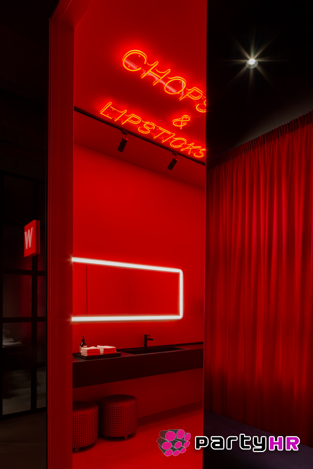 Dizajn interijera inspiriran je sofisticiranim konceptom „wabi-sabi", s pomno osmišljenim detaljima koji suptilno odaju počast japanskoj kulturi bez nepotrebnih klišeja. Crveni baršunasti zastori stvaraju toplu, luksuznu atmosferu, dok je japanska crvena boja postala posebno popularna zahvaljujući dojmljivo uređenom ženskom toaletu, omiljenom mjestu za fotografiranje na društvenim mrežama. Cjelokupan dojam zaokružen je impresivnom, indirektnom rasvjetom te velikim, custom-made lusterima koji dodatno naglašavaju eleganciju prostora.