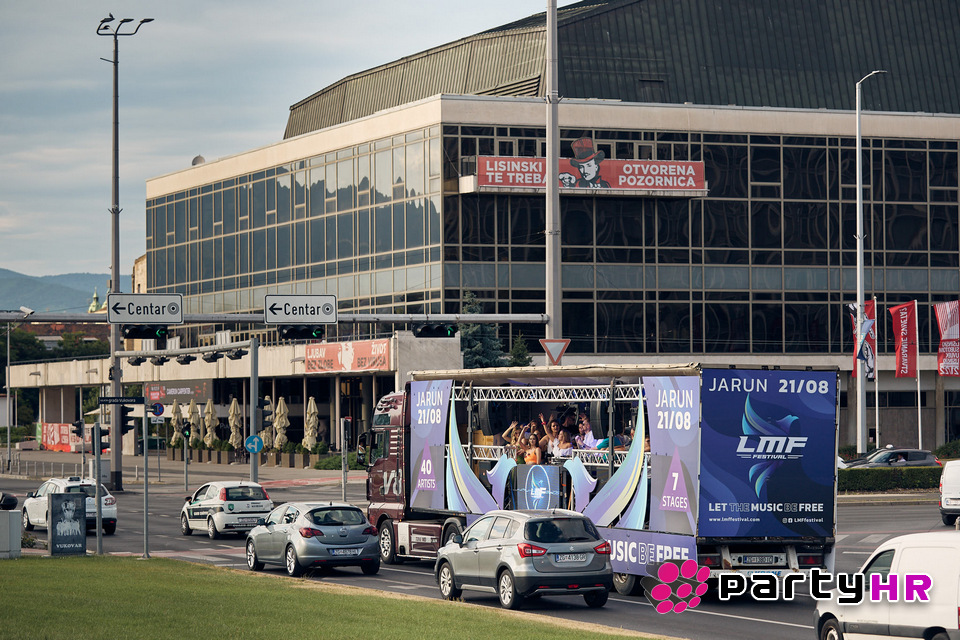 Najzabavniji party proteklog vikenda održan je na atraktivnoj pozornici - velikom party kamionu pod nazivom LMF - koji je u popodnevnim satima svojim zaraznim techno ritmovima zapalio zagrebačke ulice. Time je i službeno najavljen istoimeni festival, punim imenom 'Let The Music Be Free', koji će svoje premijerno izdanje doživjeti krajem kolovoza na Jarunu. LMF iščekuje se s velikim nestrpljenjem, posebice s obzirom na okolnosti u proteklih godinu i pol, kada su ovakvi događaji bili mogući samo u mašti.