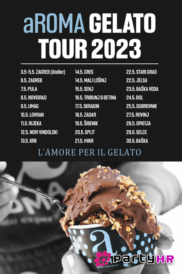 Ovo je priča o velikoj ljubavi, a njezin je univerzalni jezik - gelato! Gotovo je nemoguće zamisliti da postoji netko tko ga je probao, a da mu nije zarobio srce zauvijek. Priča je ovo o jednom posebnom gelatu i najslađoj turneji ikad organiziranoj u Hrvatskoj. aROMA Gelato Experience Tour sprema se na putovanje u više od 30 hrvatskih gradova, a tijekom mjeseca svibnja donosi čisti užitak pravog artizanskog gelata koji će vas povesti na najromantičnije i najzabavnije putovanje uz atraktivne sadržaje i interaktivan program.