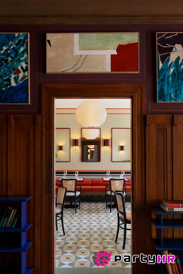 Tijekom preuređenja, provedenog uz duboko poštovanje prema Tončićevom naslijeđu u suradnji s arhitekticom Katjom Stubnyom i dizajnerskim studiom 502, zadržani su postojeći strogi geometrijski i prostorni odnosi, a selektivnom upotrebom materijala i intervencijama u unutrašnjem uređenju naglašen je osjećaj prostornosti i fluidnosti. Ključna komponenta koja definira ovaj projekt je intenzivna upotreba boje kao sredstva za oblikovanje prostora, dok je dizajn interijera proizašao iz posvećenosti očuvanju izvornog arhitektonskog jezika zgrade, a svaki njegov pažljivo odabrani segment, poput slika Jelene Bando koje krase središnji salon i keramičkih vaza studija Anaestudio, teži izazvati emocije, potaknuti razgovor i ponuditi više senzorno iskustvo koje nadopunjuje kulinarske užitke.