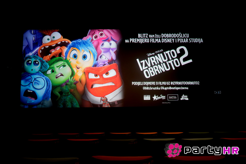 Blitz i Disney Hrvatska, zajedno sa partnerom premijere dm drogerie markt Hrvatska, su jučer u Kaptol Boutique Cinema okupili mnoge ljubitelje dugo očekivanog animiranog nastavka nastalog u suradnji popularnog studija Disney i Pixar, naziva „Izvrnuto obrnuto 2". Posebnost ove premijere je da su svoje glasove znanim animiranim likovima posudili poznati hrvatski glumci i infleunceri među kojima su i Judita Franković Brdar, Biserka Ipša-Kunčević, Marko Makovičić, Iva Šulentić, Bojan Navojec, Neva Serdarević, Jelena Miholjević, Frano Mašković, Amanda Prenkaj, MIACH, Niko Čuturić, Leona Paraminski, Ella Dvornik, Mara Picukarić, Mirela Brekalo-Popović te brojni drugi.