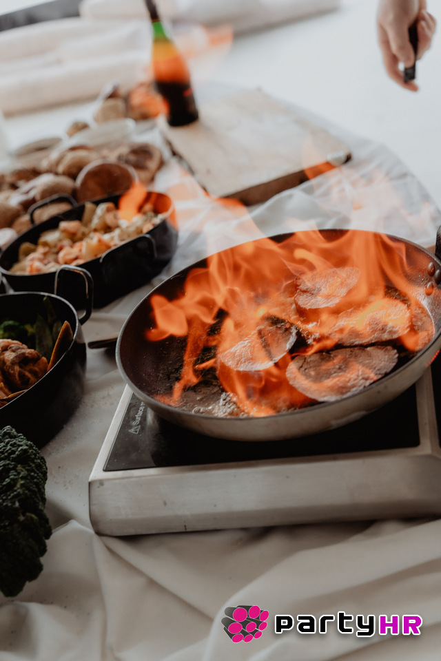 2. Show cooking - Interaktivno iskustvo pripreme hrane pred gostima, čime se naglašava svježina sastojaka i kulinarska vještina. Gosti sudjeluju u pripremi hrane kroz live cooking stanice, DIY koktel barove i iskustvene degustacije.